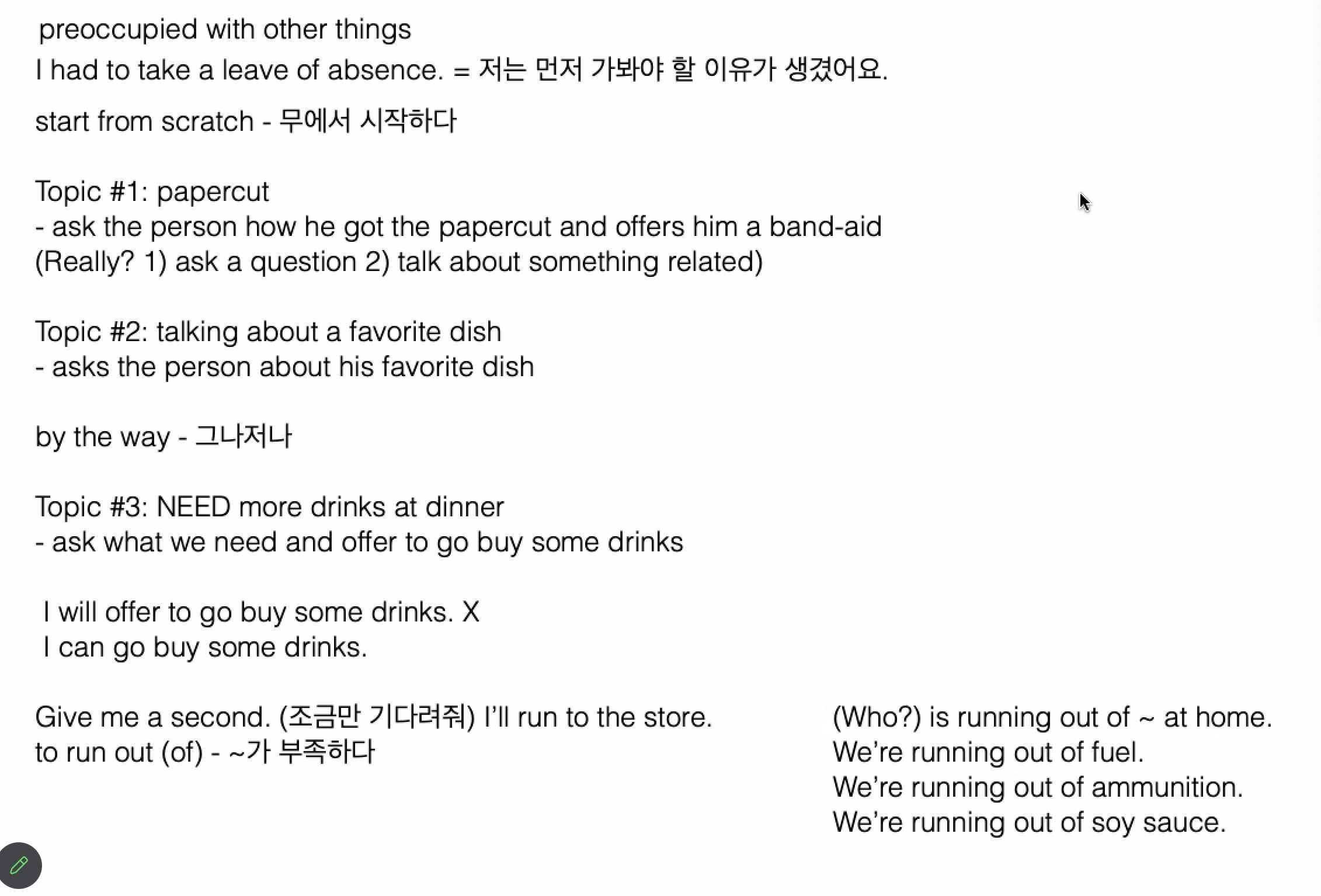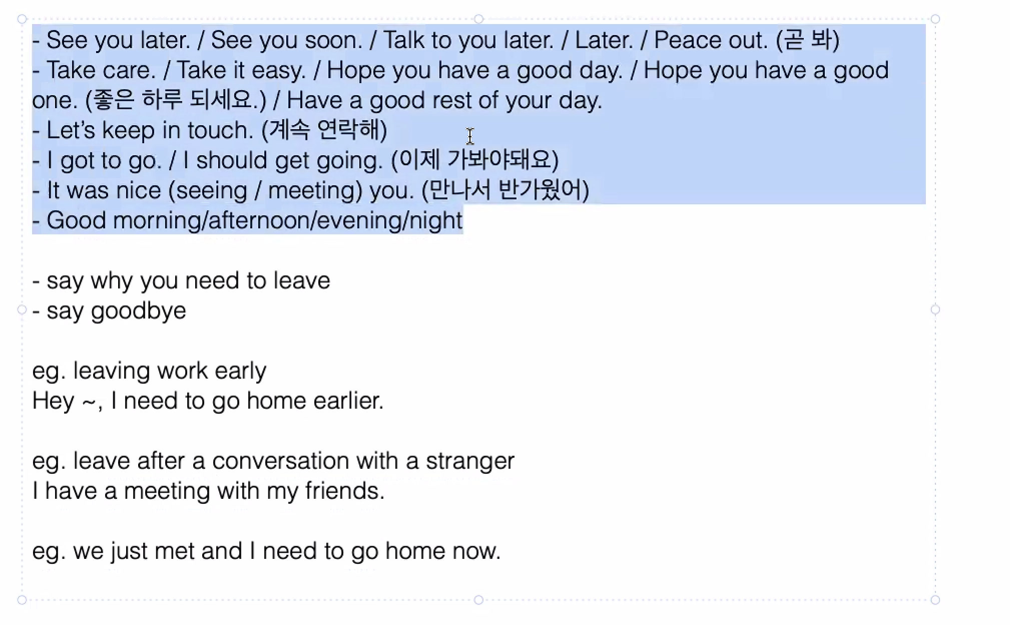 - i got to go : 사전에 왜 가야하는지 이유를 설명해야한다.